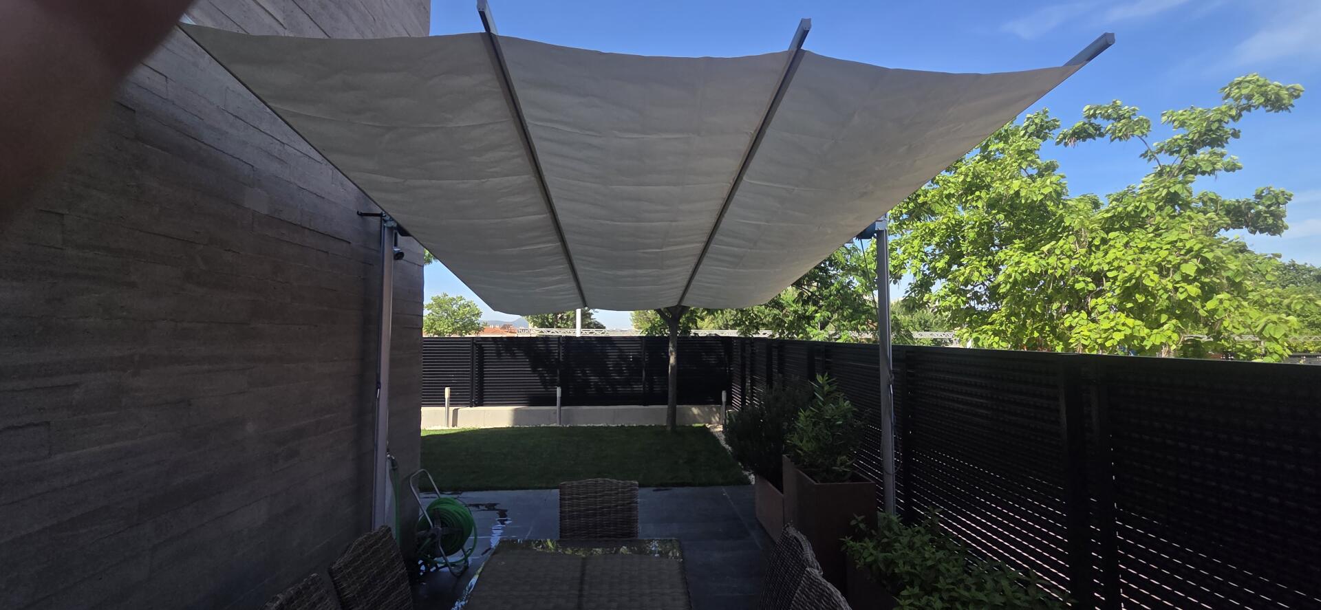 Por último, práctico y con un efecto escénico asegurado, encontramos el velo de sombra, disponible con nosotros en tres modelos principales, también a medida, que cubren más de 40sqm.