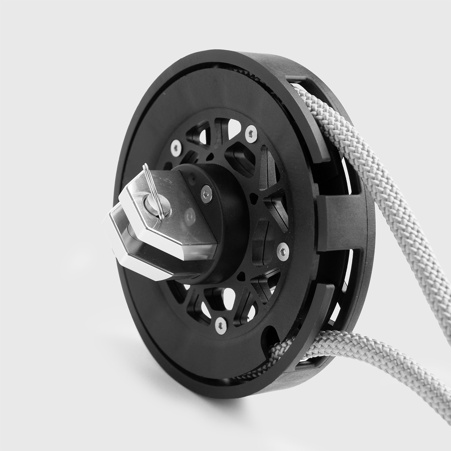 S-GRIPP es la ranura en forma de S en el cuerpo del enrollador que fija el cabo empalmado mecánicamente, sin nudos. Evita el deslizamiento y garantiza un enrollado suave y sin interrupciones.
