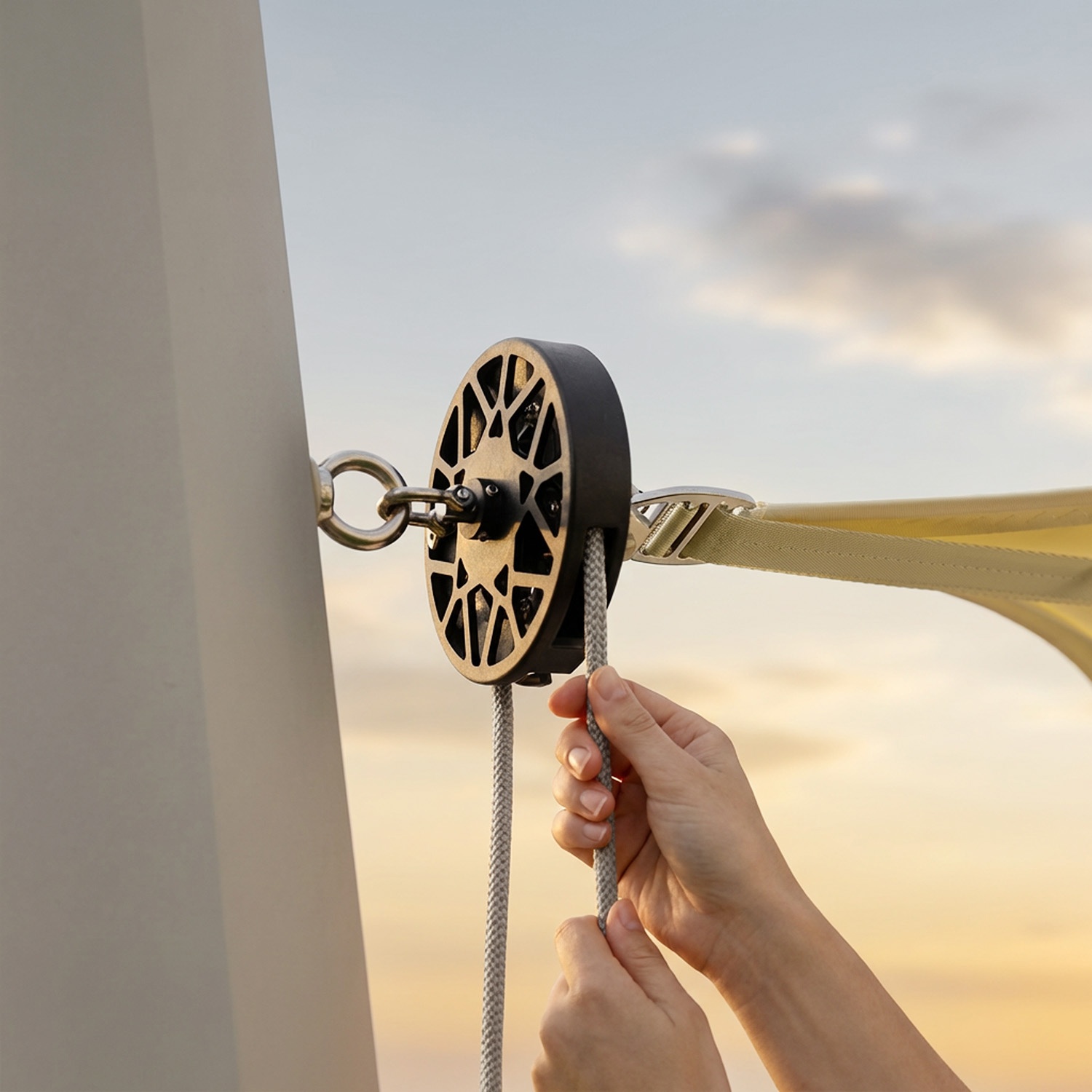 EZ Furl convierte cualquier vela de sombra fija en un sistema enrollable, sin reemplazar la instalación existente. Mediante una cuerda sin fin, la vela se enrolla en solo 90 segundos, sin motor, con un movimiento fluido que marca la diferencia. Se instala en velas de hasta 20 m², de Maanta o de otros fabricantes.