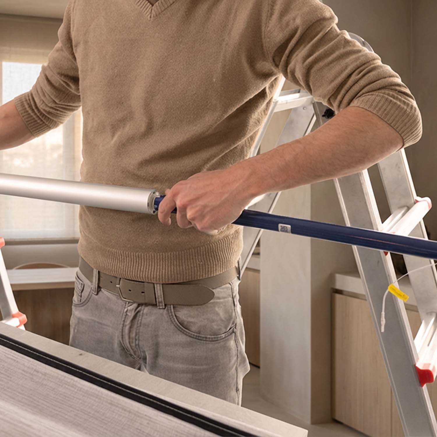 El motor Maanta para estores enrollables se instala directamente en el eje enrollador en pocos minutos, sin electricista ni obras.