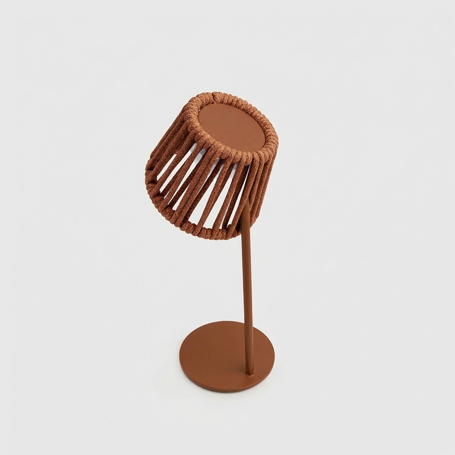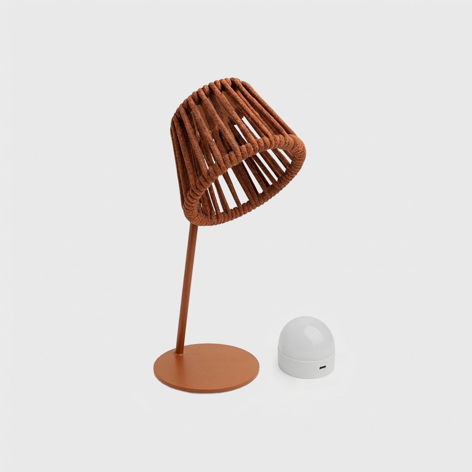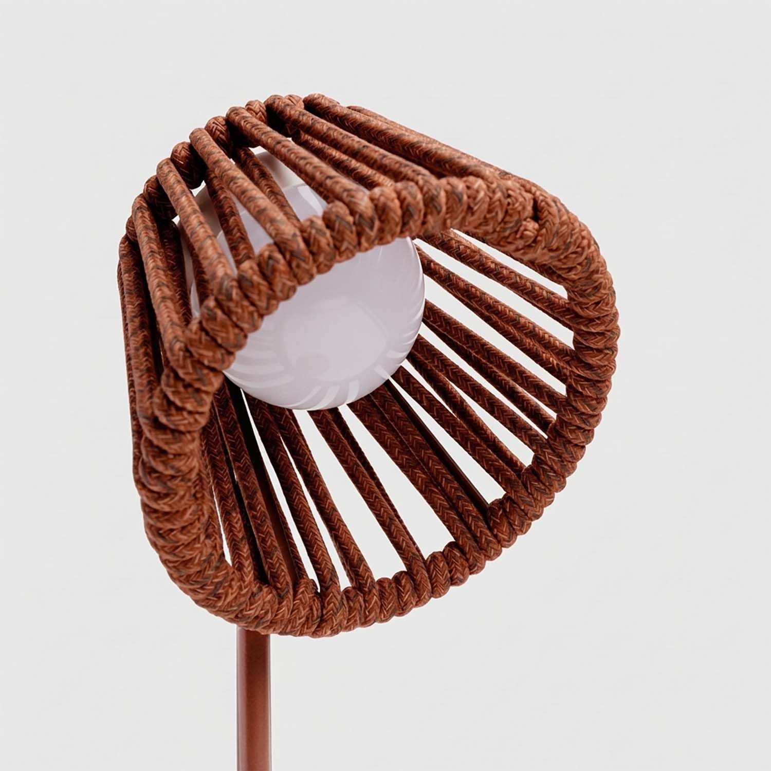 La lámpara incluye estructura de hierro lacado, revestimiento de cuerda de olefín y bombilla magnética Mag preinstalada. Lista para usar tras la primera carga.