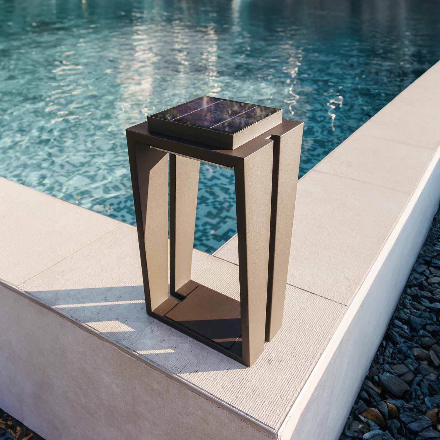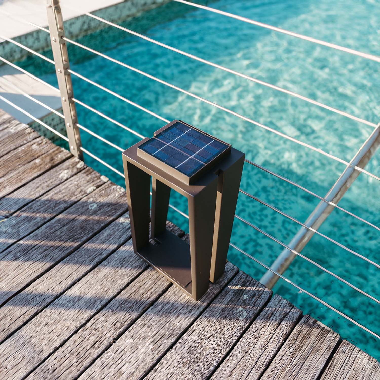 Solar ISOSS es la lámpara de exterior de encendido automático con un panel solar integrado y una batería de litio.
