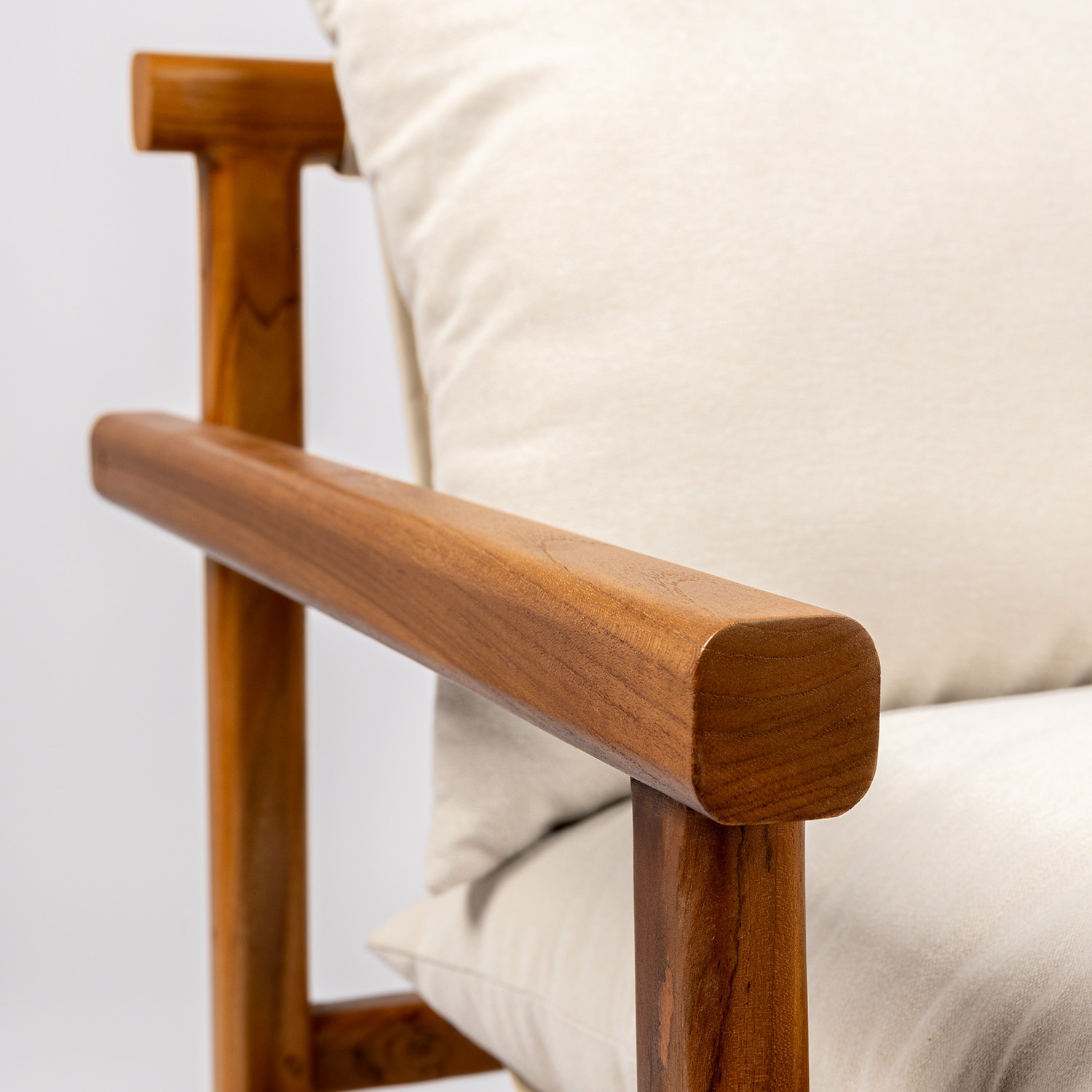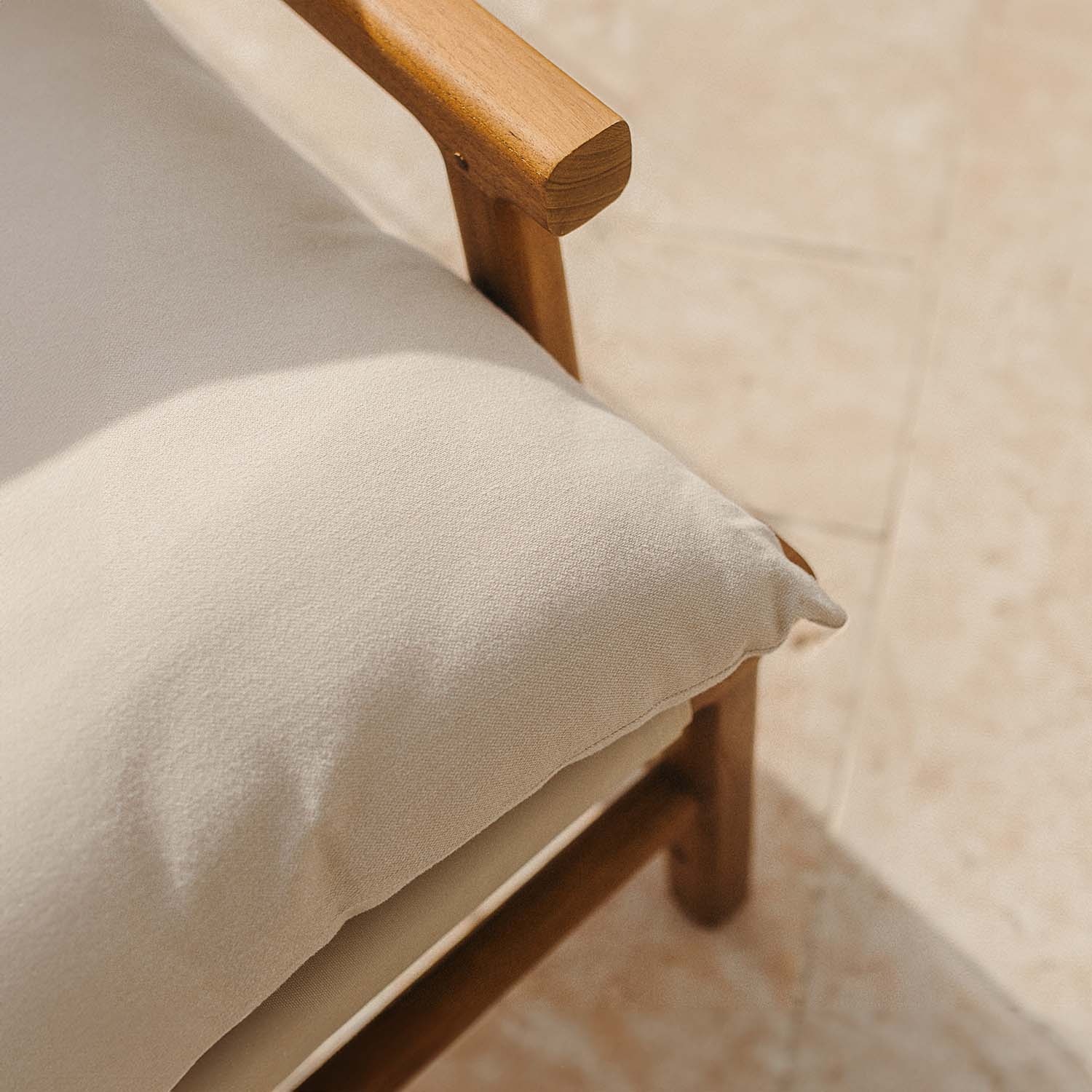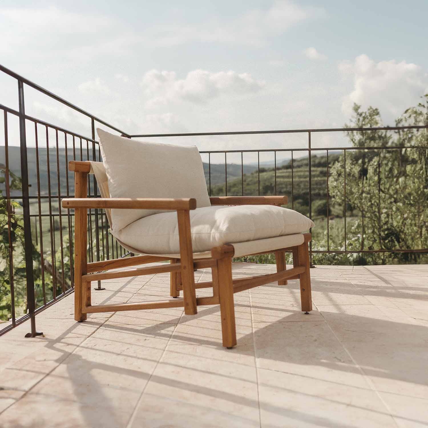 Contenido confección | Estructura en teka, cojines desenfundables y tornillería pintada tono sobre tono |
