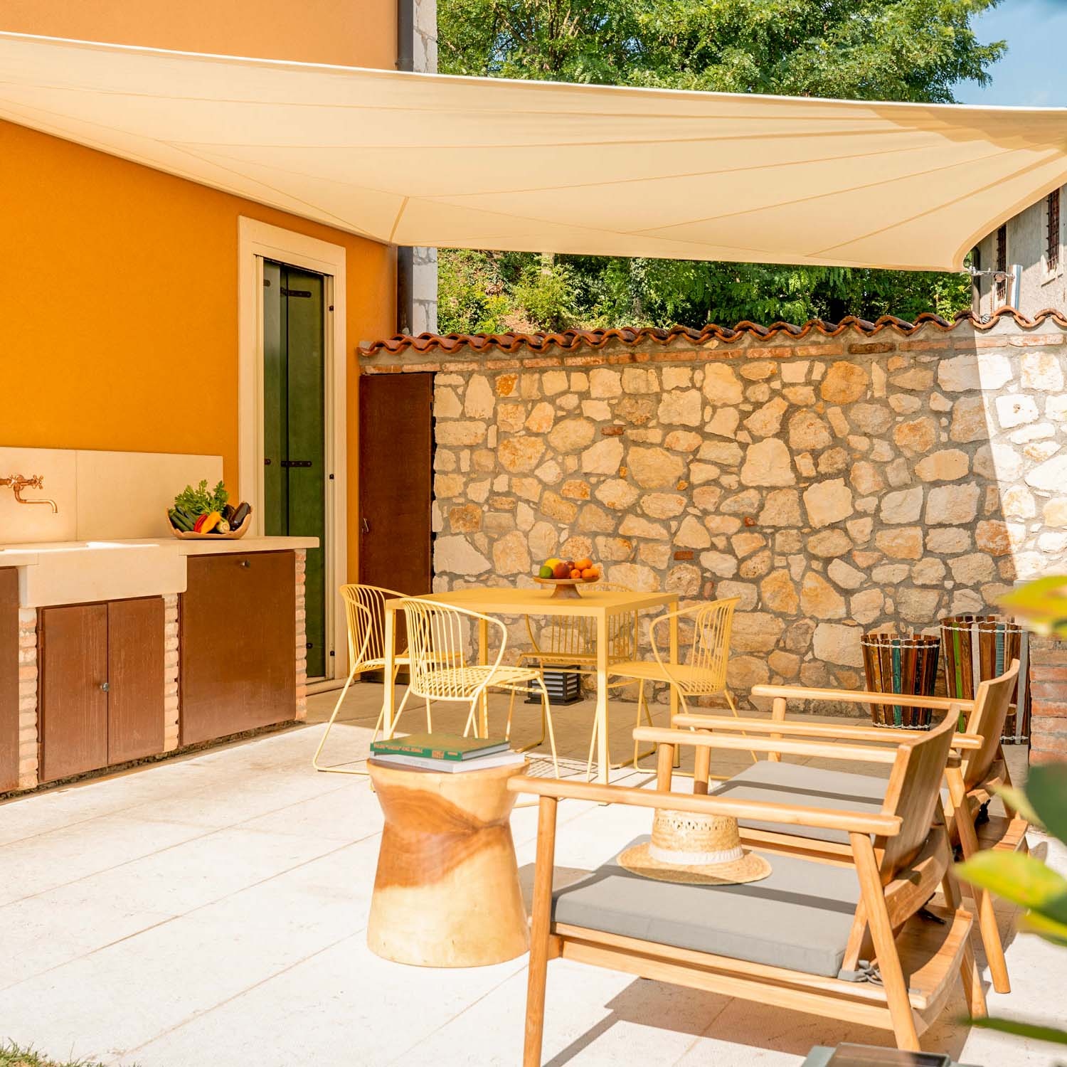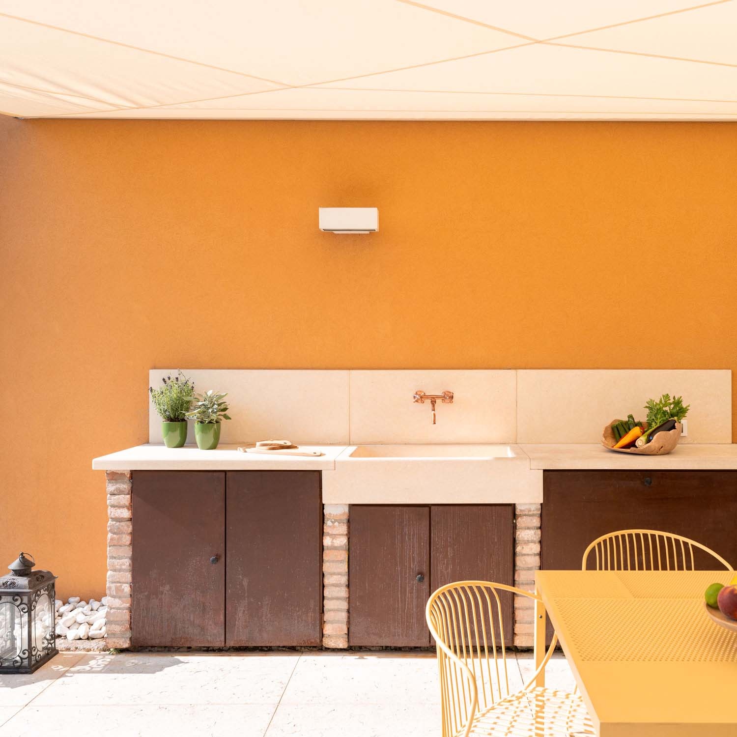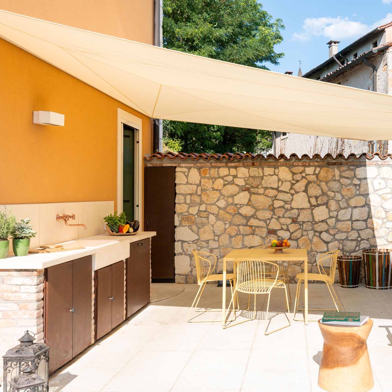 Con la necesidad de anclar un lado de la vela al muro de la casa, nace Solaria Lean.