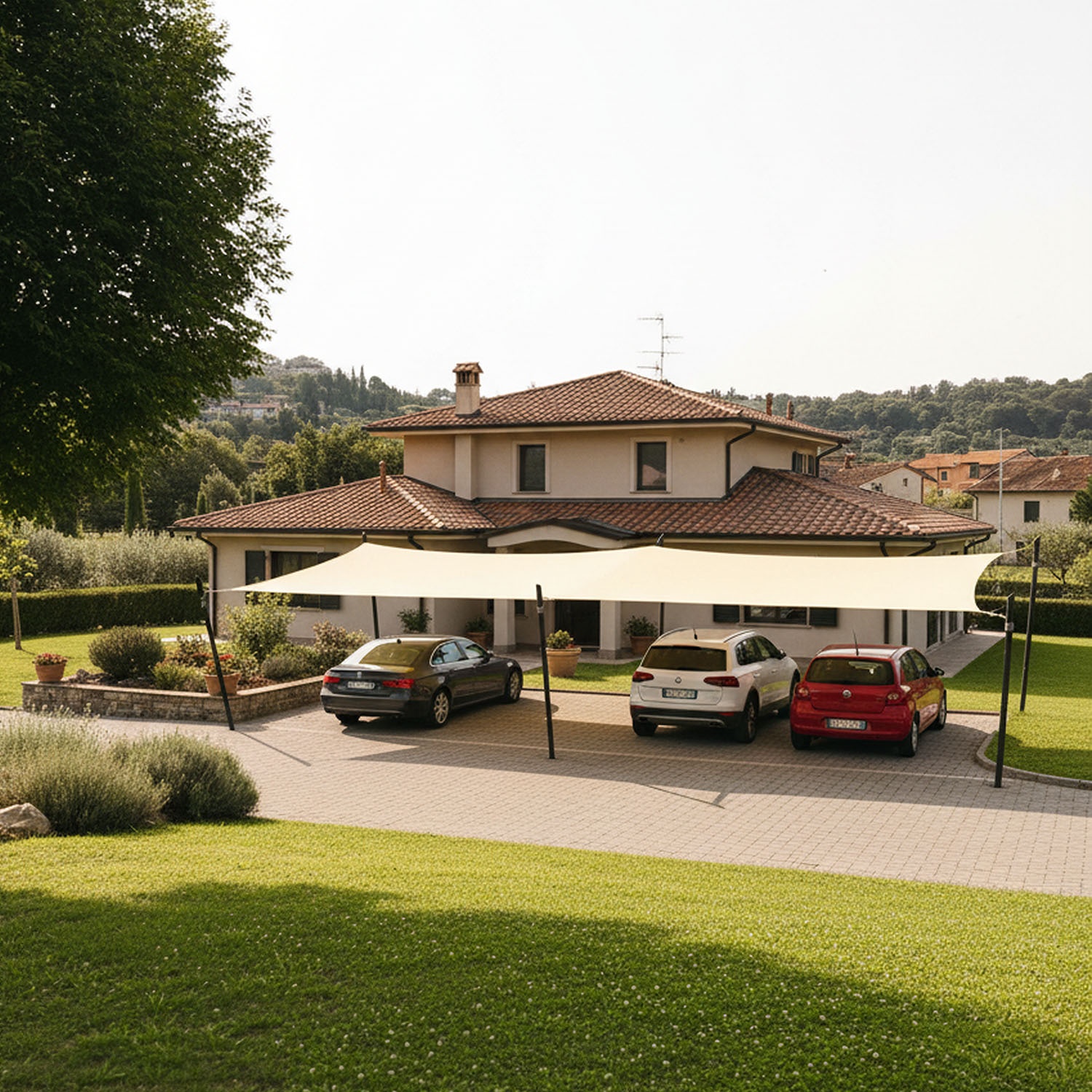 Sólo recibirá la vela de sombra. Los tensores y otros accesorios de montaje se venden por separado. Puede elegir el anclaje más útil para su instalación navegando en la categoría de postes y anclajes.