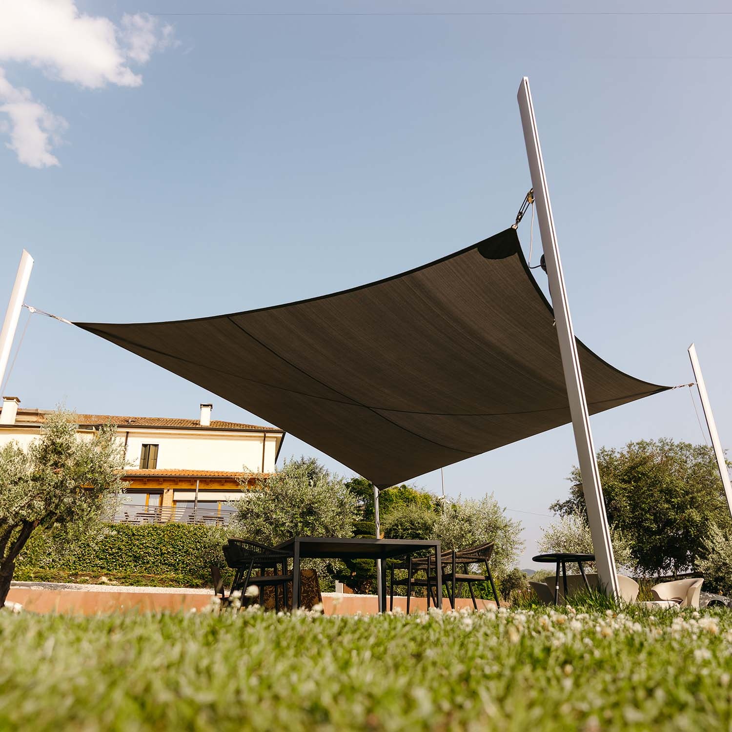 Postes de anclaje estudiados y diseñados para la fijación segura de las velas de sombra. Disponible en acero, acero inoxidable 304 y aluminio. Ideal para instalaciones en jardines, terrazas y áticos, incluso en presencia de viento.