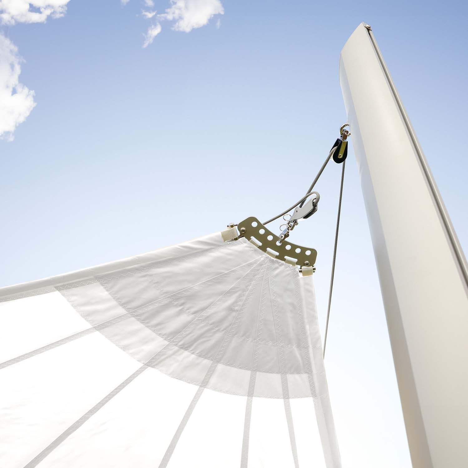 | Componentes incluidos – sistema de tensado | Grupo muelle, carrete enrollacabo, poleas en los ángulos de la vela, cabo de tensado, soporte en voladizo |
