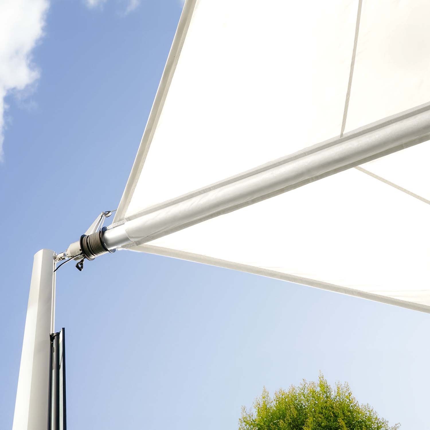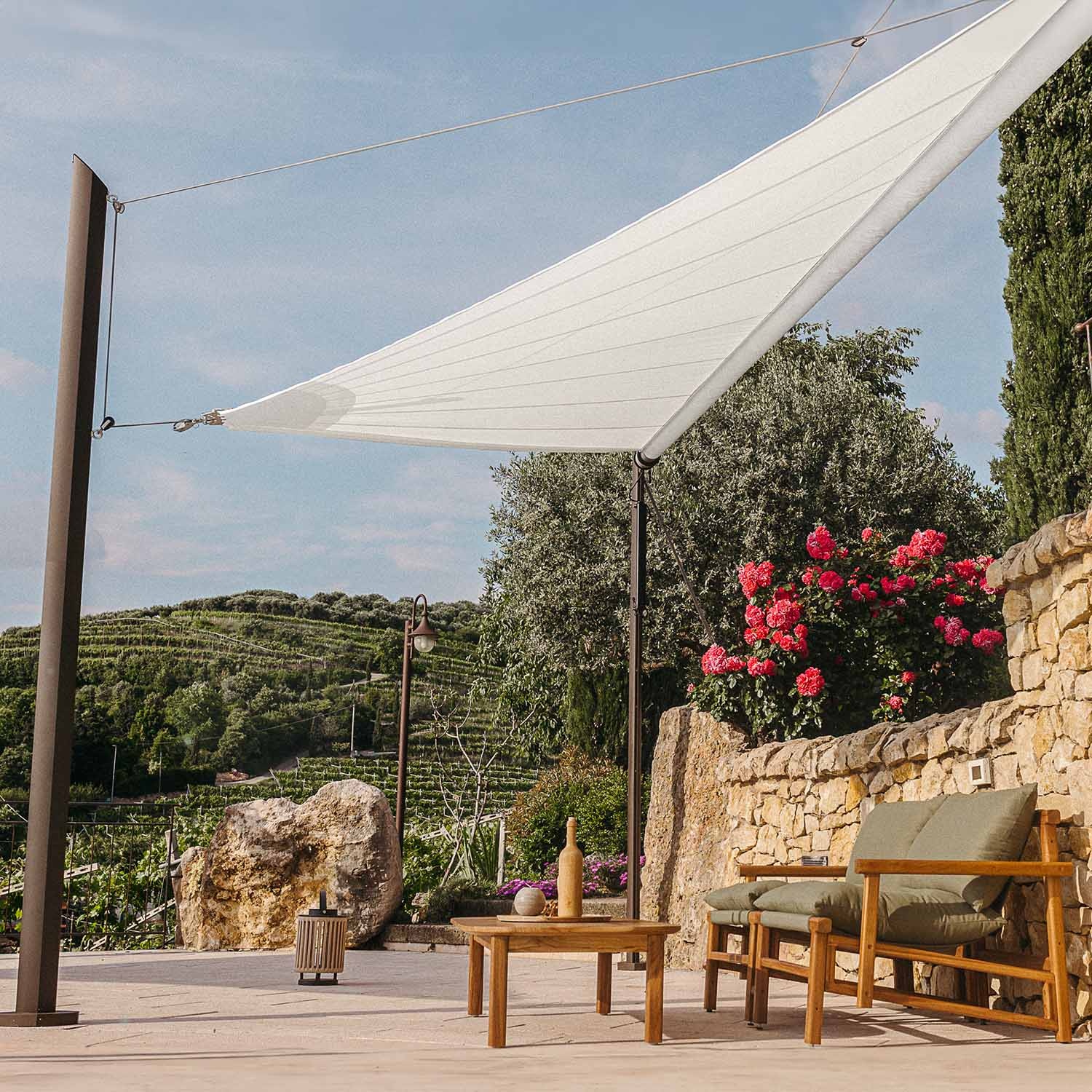 Puedes dejar tu toldo vela motorizado Zefira instalado todo el año. El acero inoxidable y el tejido Purishade® resisten la lluvia, el frío y las inclemencias. Maanta diseña velas enrollables automáticas pensadas para una larga duración. Desmontarla en invierno es recomendable, pero no obligatorio.